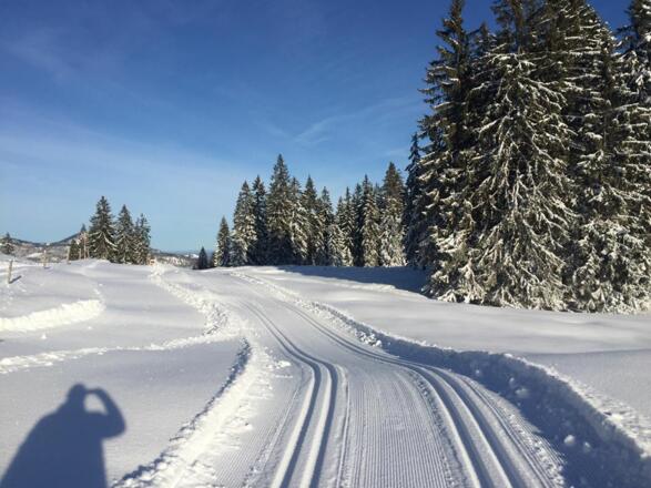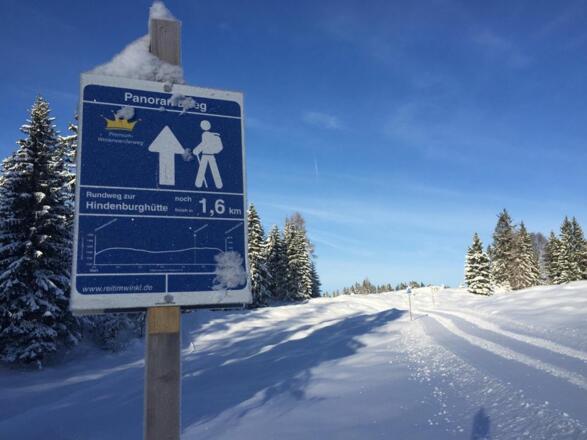 Start an der Hindenburghütte. Die Strecke führt am Panoroma Winterwanderweg entlang. Anschließend geht es etliche Höhenmeter runter zu den Skischanzen am traumhaften Gut Steinbach. Hier erwartet Dich ein Verpflegungspunkt. Weiter geht es von dort Richtung Ziel.