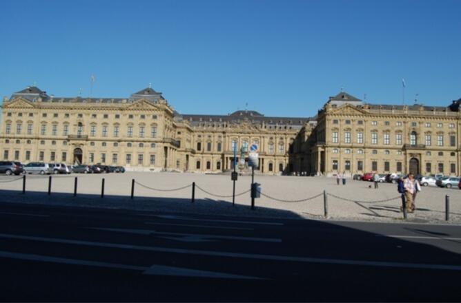 Partendo dalla sede dell’unione dei comuni, giriamo a sinistra sulla Hirchgasse, poi a destra sulla Rathausgasse e, rigirando a sinistra, arriviamo sul Gartenweg. Giriamo a destra e arriviamo sul Nelkenweg che seguiamo a sinistra; attraversiamo la Oberpleichfelderstrasse, continuiamo sul Hellerstocksweg e usciamo dalla cittadina. Siamo in una campagna ben curata, con campi squadrati, delimitati da stradine più o meno larghe; seguiamo attentamente il tracciato e con un percorso fatto di lunghi rettilinei, frequenti cambi di direzione, in 4,2km arriviamo alla periferia di Unterpleichfeld, piccolo comune, che lambiamo soltanto; continuiamo il nostro cammino, superiamo la Oberpleichfelderstrasse e percorriamo un altro rettilineo di 1,8kim attraverso i campi. Arriviamo alla St2260. che, girando a destra, costeggiamo per 1,7km, quando troviamo un sottopasso che ci porta dall’altra parte; superiamo l’incrocio che troviamo dopo 100m, continuiamo per 400m e arriviamo a Kurnach, comune di oltre 4.000 abitanti, che noi attraversiamo rapidamente girando prima a destra sulla Pleichfelderstrasse, poi a sinistra sul Rosenweg, ancora a sinistra sulla Wurzburgerstrasse, a destra sulla Krauterwiesse; 400m e giriamo a destra sul Afterweg. Siamo di nuovo in aperta campagna; 700m in linea retta e siamo al sottopasso della dell’autostrade 7, superata la quale continuiamo lungo un tracciato campestre che ci porta in 1,4km sull’argine del torrente Kurnach e all’incrocio con la Ostring che attraversiamo, giriamo a destra, poi subito a sinistra ancora lungo il torrente che attraversiamo dopo 300m; giriamo a sinistra e in 150m siamo sulla Am Eichelein: siamo a Estenfeld, altro comune di circa 4.000 abitanti. Entriamo nella cittadina su Am Eichelein, poi a destra in Muhlgasse, ancora a destra in Backerstrasse, a sinistra in Untere-Ritterstrasse, dopo 200m a destra sulla Lengfelderstrasse che seguiamo per 500m, superando anche una rotonda, quando giriamo a destra su In Kurnachgrund, fino all’ attraversamento del torrente Kurnach. Giriamo a destra e seguiamo il corso d’acqua per circa 1,5km, fino alle prime case di Lengfeld, sobborgo alle porte di Wurzburg, la nostra meta. Arriviamo sulla Rittelstillstrasse e giriamo a destra sulla Riedstrasse; attraversiamo la Geor-Engel-Strasse e continuiamo sulla Herrnhofstrasse che continua a sinistra sulla Am Schlossgarten che seguiamo per oltre 1km anche quando diventa Am Muhlemham e poi Steibruchweg girando a sinistra; giriamo a destra sulla Lioba Strasse, attraversiamo la circonvallazione e continuiamo sulla Pilziggrunstrasse, che girando a destra ci porta sulla Werner-von-Siemens Strasse; giriamo a sinistra, 200m e superiamo la 8 e girando a sinistra raggiungiamo la Numbergerstrasse. Che seguiamo per oltre 2km; superiamo gli svincoli autostradali e giriamo ancora a sinistra,; superiamo la ferrovia e camminiamo parallelamente alla 8 fino alla gigante rotonda che aggiriamo a sinistra e prendiamo la terza uscita, la Ludwigstrasse: 500m e giriamo a sinistra sulla Theaterstrasse e siamo in centro, in Residenzplatz.