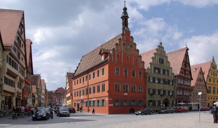 Dinkelsbühl è un comune di 11.584 abitanti. La città fa parte dell’itinerario romantico e il suo centro storico e composto da bellissime dimore e da ben 16 torri. La cattedrale di San Giorgio è una delle più belle cattedrali tardogotiche di tutta la Germania. Di notte uviene ancora rispettata l’usanza del guardiano notturno che compie la sua ronda nel centro storico illuminato. La cittadina ricevette nel 1305 dall’imperatore Enrico V gli stessi diritti municipali di Ulma. Nel 1351 fu riconosciuta libera città dell’impero e la saggezza del suo governo è documentata nella collezione di leggi conosciuta come “Diritto di Dinkelsbühl“. Con la riforma protestante divenne, come altre città, una città imperiale paritaria (Paritätische Reichsstadt, ufficializzando con la Pace di Westfalia la sua amministrazione di pari diritti tra cattolici e protestanti (Gleichberechtigung) fino al 1802, quando fu annessa dalla Baviera.