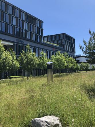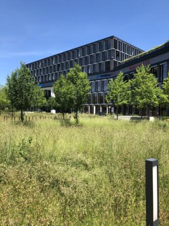 Der Bürokomplex in der Riesstraße ist im Sinne des New Work ausgestattet und gewann die LEED- Zertifizierung für ökologisches Bauen in Gold.