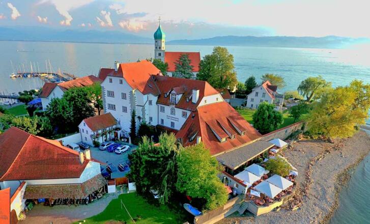 Von Friedrichshafen kommend: Abfahrt Kressbronn Richtung Wasserburg Bodensee, Abfahrt Wasserburg (Bodensee) rechts abbiegen, Straße bis zur Kreuzung am Lindenplatz folgen, der Ausschilderung zur Halbinsel folgen.