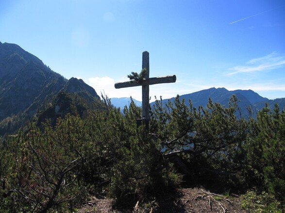 Eine Bergtour auf einen dem Sonntagshorn bei Ruhpolding vorgelagerten Dreifachgipfel. Der mit blauen Punkten gekennzeichnete Anstieg auf der Nordwestseite ist entgegen den anderen Wegen nicht einmal in der neuesten AV-Karte zu entdecken aber gut zu finden.