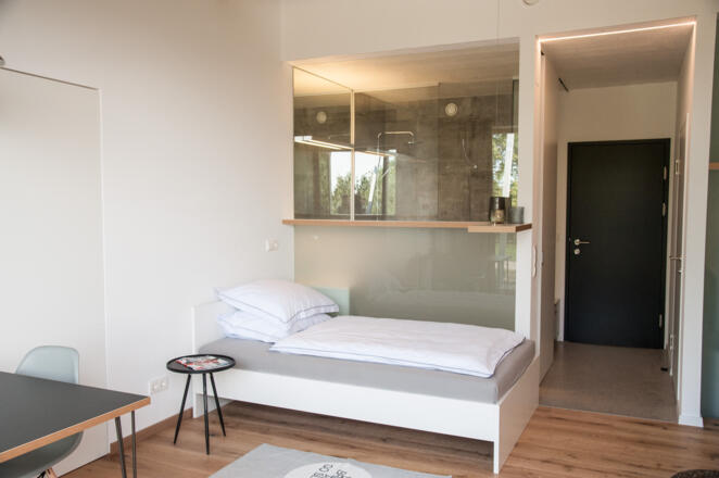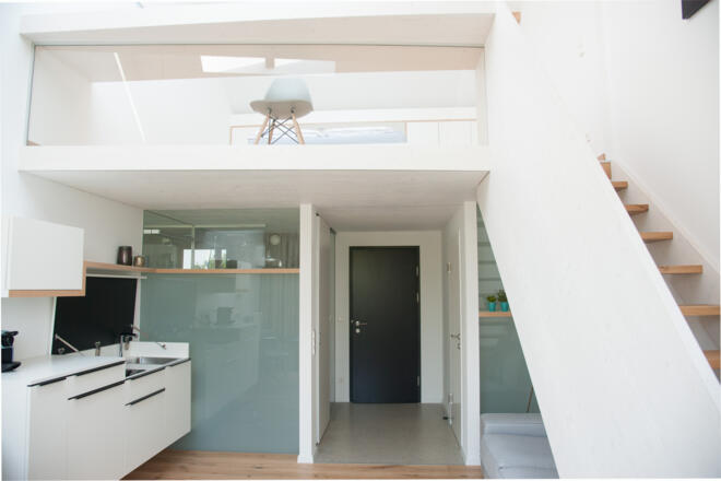 Die kreativen Eigentümer haben bei der Planung sowie der Einrichtung grossen Wert auf modernes Design und ausgefeilte Architektur gelegt. Die innovativ eingerichteten Studios, teilweise mit Galerie zum Schlafen und übergrossem Arbeitsplatz, sind Licht durchflutet und haben eine besonders hohe Wohnqualität.