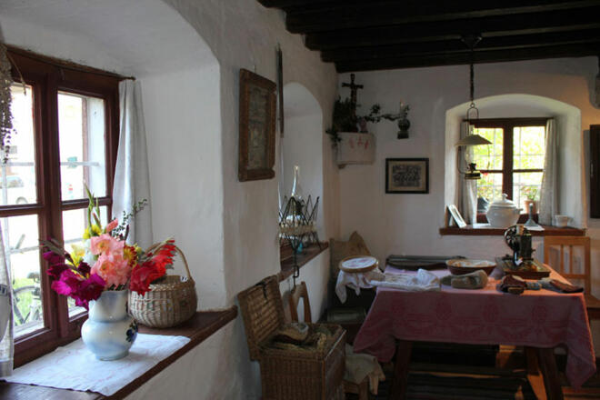 Dort gezeigt werden unter anderem: eine offene Feuerstelle in der Küche, ein Webstuhl, Textilien, Geräte des Waschalltags. Maschinen für die bäuerliche Arbeit, viele Fahrzeugtypen und mehrere Abteilungen der früheren Handwerksberufe.