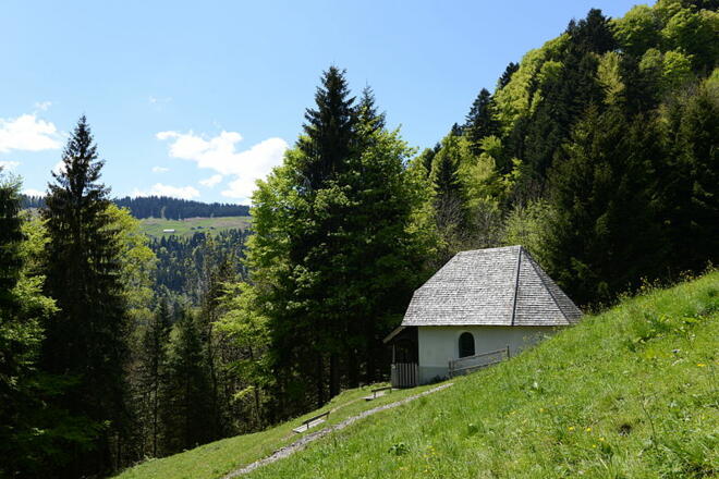 Auf den Spuren der seligen Geschwister Ilga, Merbot und Diedo von Alberschwende nach Andelsbuch. Eine familienfreundliche und gut ausgeschilderte Wanderung.