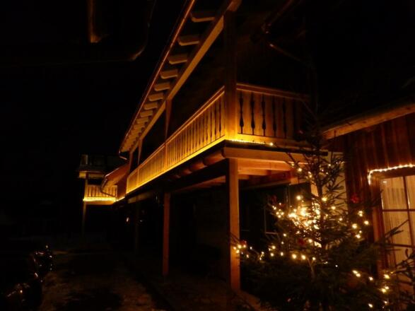 Die Einzigartigkeit spürt man bei uns auch auf dem Balkon, wo unbehandeltes Lärchenholz mit überdachtem Glas eine besondere Atmosphäre entstehen lässt.