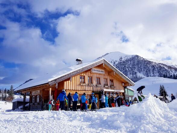 Die Skihütte direkt an der Piste, mit cooler Musik.