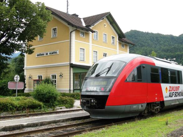Die Almtalbahn ist eine durch wunderschöne Landschaft führende Nebenbahn mit Zwischenhalten in den Almtalgemeinden Pettenbach, Scharnstein und Grünau im Almtal. Daher ist diese Bahn das ideale Fortbewegungsmittel, um ins Almtal zu kommen und dort z.b. eine Wanderung auf dem Almuferweg Genuss am Almfluss zu machen, oder einen Ausflug zum Almsee oder Cumberland Wildpark. Viele Möglichkeiten stehen Ihnen offen.