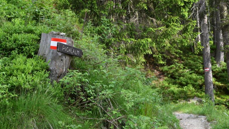 Vom Alpinpark Dienten bzw. Alpinpark Haltestelle wandern wir über eine Forststraße hinauf bis zur Pichlalm. Von dort aus führt ein Pfad wieder zurück zum Filzensattel. Hier können wir den Wanderbus zurück zum Ausgangspunkt nutzen oder ein Stück zu Fuß auf der Bundesstraße zum Ausgangspunkt bergab zurück gehen.
