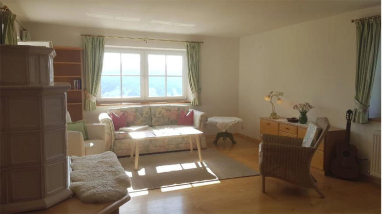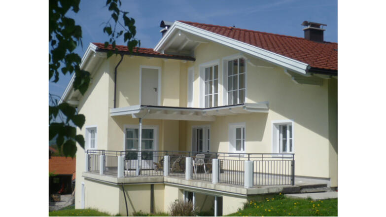 Große Ferienwohnung mit 5 Schlafplätzen in 3 Schlafzimmern. Eigene, überdachte Terrasse mit vollem See- und Bergblick. Eigener Eingang, Zugang zur Wohnung über eine Treppe. Gartenbenützung ohne Einschränkung.
