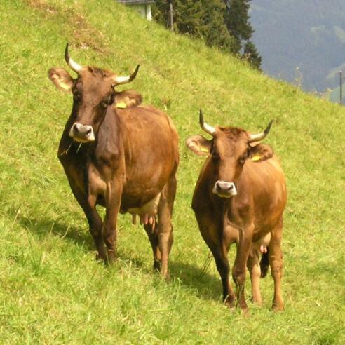 Überall steht das fürs Allgäu und den Bregenzerwald typische Braunvieh, eine spezielle Kuhrasse, die das Erscheinungsbild des Naturparks wie kein anderes Nutztier prägt. Das Original Braunvieh hat sich hierbei durch jahrhundertelange Auslese als Regionalrasse herausgebildet. Es war besonders an die Lebensbedingungen im Gebirge angepasst. Zur Steigerung der Milchleistung wurde dann in den 60er Jahren eine amerikanische Rasse eingekreuzt.