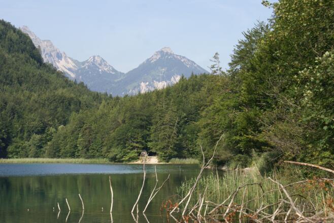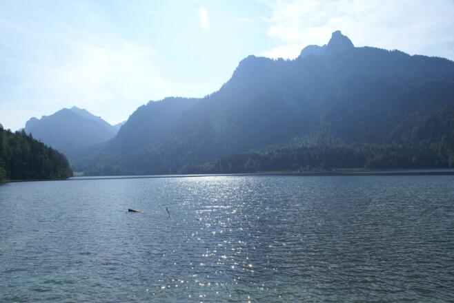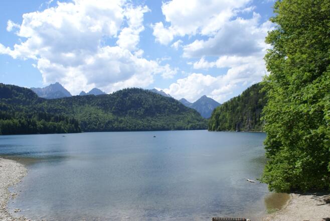 Mittelschwere Wanderung einmal um den Alpsee unterhalb der Königsschlösser Neuschwanstein und Hohenschwangau an der Grenze zu Österreich.