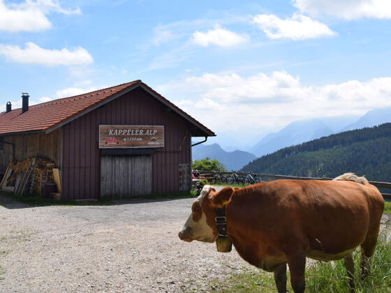 Nach dem Aufstieg am Wasserfallweg entlang wartet an der Bergstation der Alpspitzbahn das vor einigen Jahren als moderne AlpenLodge wieder erstandene Sportheim Böck mit tollem Zugspitzblick auf der Sonnenterrasse. Auch schön: die Kappeler Alm und die urige kleine Hündleskopfhütte, die erste vegetarische Hütte in den Alpen. In Kappel können Sie im Waldseilgarten Höllschlucht zusehen, wie sich die Kletterer bis zu 10 Meter hoch über dem Waldboden durch die Parcours hangeln, oder nach der Tour gleich selbst die Baumwipfel unsicher machen. Genießer-Variante: Auffahrt per Alpspitzbahn.