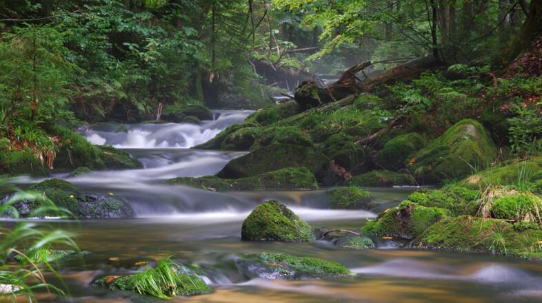 Entlang des Bergbaches Sagwasser steigt der Weg stetig an zur Sagwasserklause und weiter zum Tummelplatz, einem ehemaligen Sammelplatz für Hirten und Weidevieh. Ein kurzer Abstecher auf den versteckten Felsblock Großalmeyerschloss, der den höchsten Punkt des Hohlsteins bildet, wird mit großartiger Aussicht zum Lusen und die Nationalpark-Gipfel belohnt. Durch wilde Wälder geht es zurück zum Ausgangspunkt.