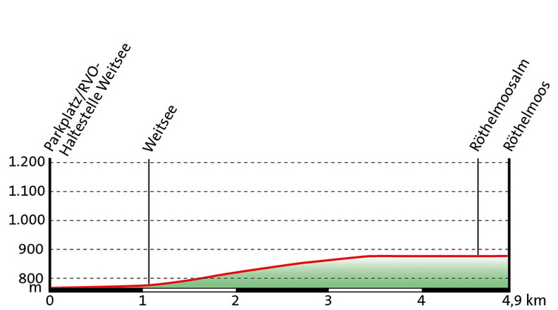 Weg: leichte WanderungAusgangspunkt: Weitsee/Röthelmoos mit dem Linienbus oder Wanderbus erreichbarAuf ebenem Weg am Bachlauf entlang zwischen Kien- und Tempelberg geht die Wanderung zur Röthelmoos-Alm ( Weg Nr. 49 ). Nach einer knappen Stunde weitet sich das Tal, und eine Rasthütte mit Brunnen lädt zum Verschnaufen ein.Der Weiterweg geht entlang des Hochmoores zu den Röthelmoos - Almen (894m).Besonderheiten: Hochmoor mit der Flora eines Moor-Schutzgebietes. Am Ende des Wanderweges bzw. Weiterweg nach Ruhpolding befindet sich die "Röthelmoosklause" ein zur Holztrifft errichtetes Kulturdenkmal, 250 Jahre alt. Im Bereich der Almfläche schöne Aussicht zur Gurnwand und Hörndlwand.Einkehr: Langerbaueralm und Dandlalm mit selbst hergestelltem Käse.Tipp: Achtung - die Strecke ist auch ein beliebter Radweg bzw. Mountainbike-Strecke. Nach der Wanderung Bademöglichkeit an den Seen..