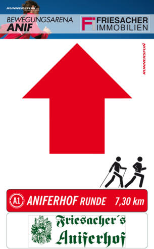 Die anspruchsvolle, beim Aniferhof startende Runde, führt eingebettet zwischen Wiesen und Wäldern bis zur Keltenallee, anschließend weiter Richtung Schloss Montfort, durch den Morzgerwald und über den Bliemhofweg in die Hellbrunnerallee. Am Ende der Allee verläuft die Strecke neben dem Schloss Hellbrunn in den herrlichen Schlosspark. Entlang des östlichen Teiles des Schlossparkes in Richtung Tiergarten zum "Anifer Thörl" gelangt man wieder zurück zum Ortszentrum Anif und zum Aniferhof.