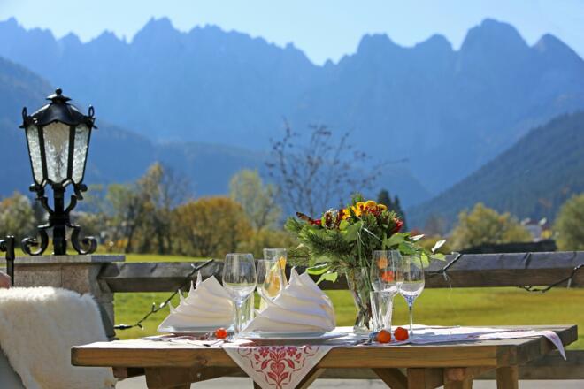 Genießen Sie den Blick auf den Gosaukamm auf unserer Sonnenterasse, nach einer langen Wandertour. Die Skiregion Dachstein West sowie der Gosausee sind ebenfalls nicht weit entfernt.