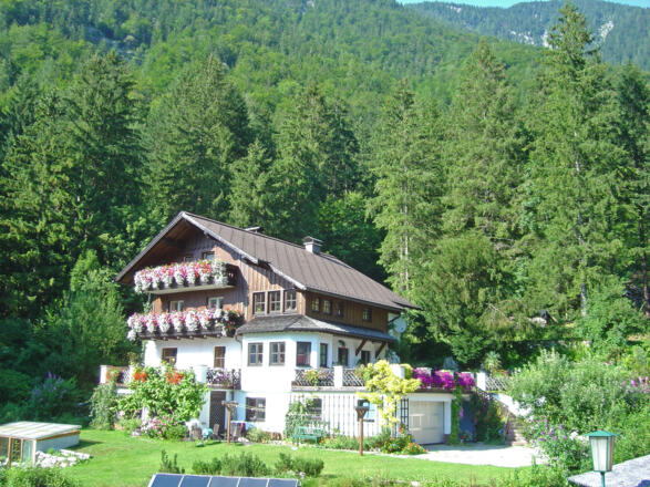 Wir sind sonnig und zentral in ruhiger Hanglage am Waldrand gelegen, abseits der Hauptverkehrsstraße und mit herrlichem Blick zum Hallstättersee.