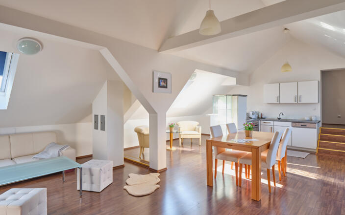 Das Haus wurde in den letzten Jahren teilweise saniert. Alle Wohnungen wurden großteils mit neuen Bad- Elementen ausgestattet. Die Apartments gibt es in verschiedenen Stilrichtungen. Sie zeichnen sich durch komfortable und qualitätsvolle Möbel, stilvolle Accessoires sowie durch gut ausgestattete Küchen und Zugang auf den Balkon aus.