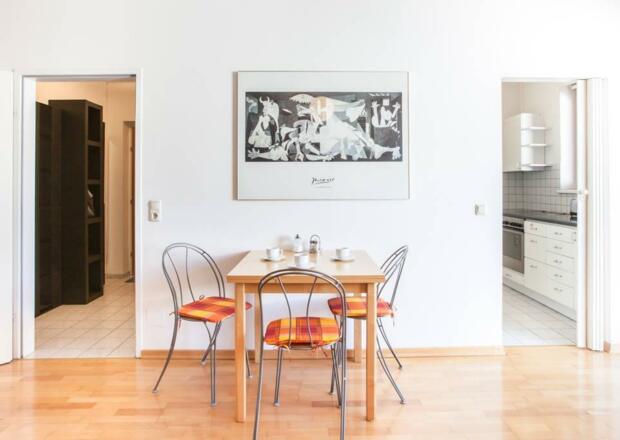Dies ist eine ruhige, moderne und gepflegte Ferienwohnung mit 65 m² in einem Mehrparteienhaus.