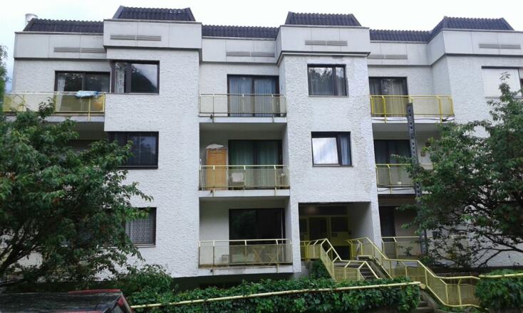 Info: Beim Haus mit den gelben Balkonen, sind Sie richtig.