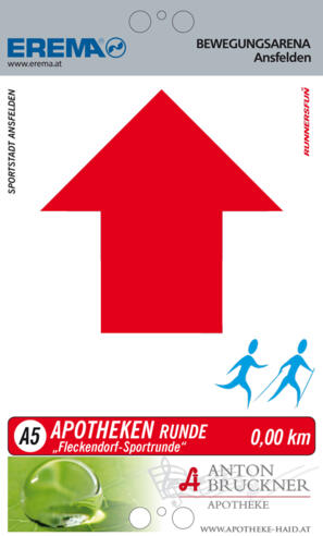 "Fleckendorf-Sportrunde" Sehr anspruchsvolle, stark kupierte Strecke vor allem für Fortgeschrittene und leistungsorientierte Läufer und Nordic Walker mit entsprechenden Ansprüchen. Die Runde führt über Fleckendorf-Wambachstraße in Richtung Nettingsdorf über den "Petersberg" und nach Überquerung der Kremsbrücke über Rapperswinkel zurück zum Start. Die rote Apotheken Runde ist zugleich eine Verbindung zum Ausgangspunkt beim Hotel Stockinger - ca. 2,0 km.