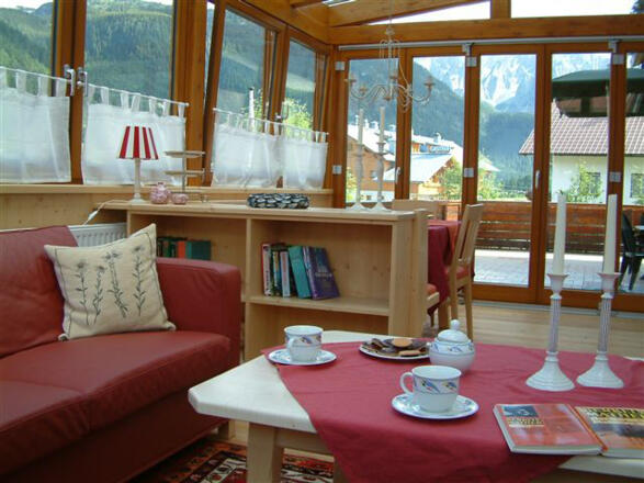 Die Wohnung hat eine große Terrasse mit herrlichem Blick auf den Gosaukamm. Das Haus liegt direkt an der Talstation der Skiregion Dachstein West. Auch Gasthöfe und die Bushaltestelle sind ganz in der Nähe. Das Haus ist ein guter Ausgangspunkt zum Wandern und Mountainbiken und auch die Langlaufloipen sind in wenigen Metern erreichbar.