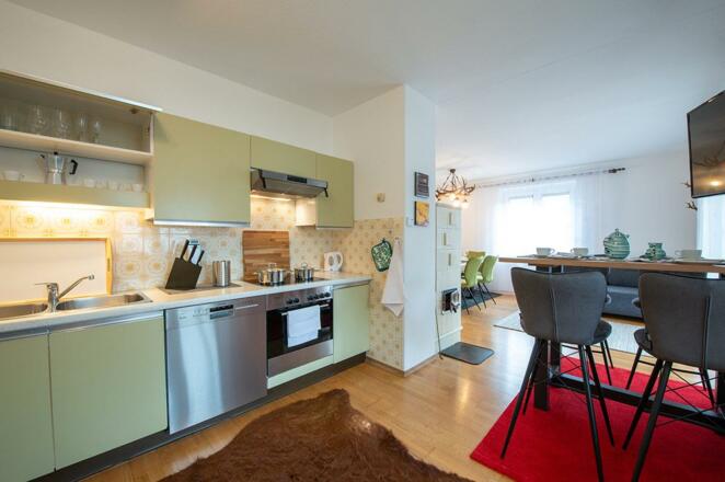 Beide Ferienwohnungen (ca. 90 m2) haben Platz für 4-6 Personen (je 2 Doppelzimmer und eine ausziehbare Couch im WZ), sind voll ausgestattet und mit viel Liebe zum Detail neu eingerichtet. Unser Motto: „Ankommen und Wohlfühlen“! Darum erwartet unsere Gäste gut gekühltes Eggenberger Bier, ausgesuchte Rot- und Weißweine und Zirbenschnaps – typisch für unsere Heimat (Preise siehe Infomappe). Wir stellen gerne Bettwäsche, Handtücher und alle Grund- und Verbrauchsmittel zur Verfügung (siehe Homepage)