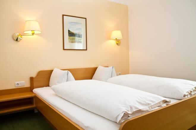 55 Betten im Haupthaus (5 Einzel-, 18 Doppel-, 4 3-Bettzimmer, 1 Suite)
