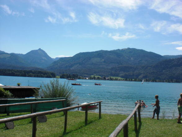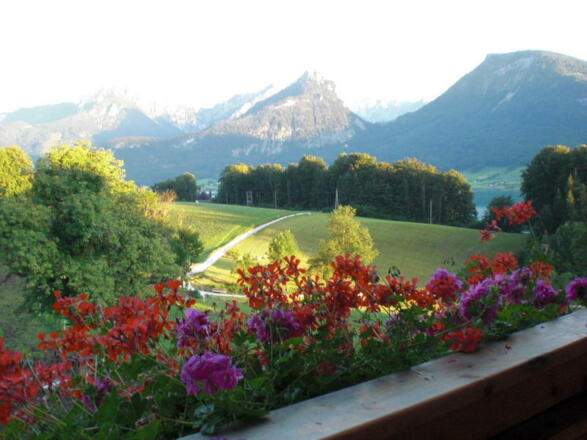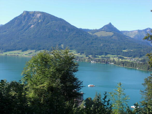 Genießen Sie den herrlichen Ausblick auf die umliegenden Berge und den Wolfgangsee.
