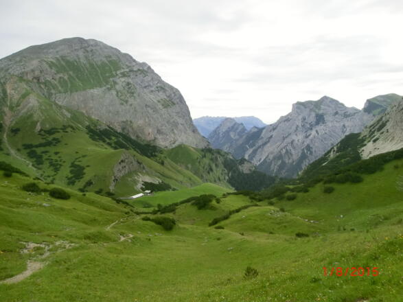 Abwechlungsreiche Wanderung mit Einkehrmöglichkeit von Eng ( Rißtal ) aus gehend zum Sonnjoch. Etwas zurück und weiter zur Lamsenjochhütte. Etappe 1 einer 3-Tageswanderung durch das Karwendel.