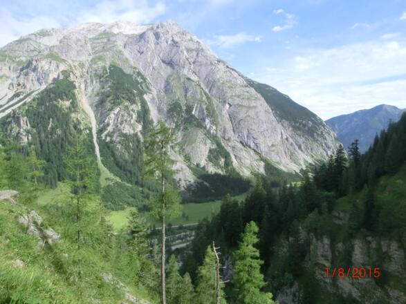 Wir lassen das Auto am Alpenhof im Rißtal stehen ( oder man kommt gleich mit dem Bus angereist und fährt bis zur Engalm ). Ab hier wäre die Straße ohne hin gebührenpflichtig. Ab dem Alpenhof fährt man mit dem Bus oder per Anhalter bis zum ende des großen Ahornbodens durch das Risstal bis zum Alpengasthof Eng.