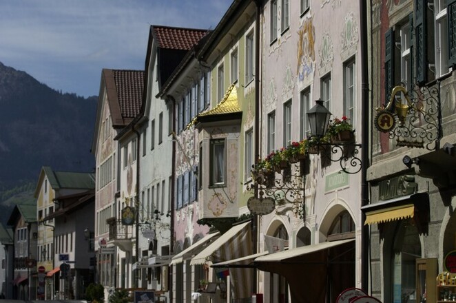 Vom Floriansplatz aus gehst du über die Römerstrasse auf der rechten Seite zu einem schmalen Pfad, der auf die Ludwigstrasse beim Schuhhaus Wittman führt, das sogenannte Fuggergasserl. Hier kann man den traumhaften Blick über den Ort und das Wettersteinmassiv genießen. Zurück geht’s vorbei am Haus Nr.8, das „ Alte Haus“, das in Teilen aus der Barbarossa-Zeit stammen soll (12. Jhd). Die Lüftlmalereien von Heinrich Bickel am Gasthof Fraundorfer erzählen von Hochzeitsgelagen, die Freskenmalereien an anderen Häusern von den Berufen, dem Bauernleben und religiösen Szenen. Die nach 1865 wieder neu erbaute und frisch restaurierte Pfarrkirche Maria Himmelfahrt ist einen Besuch wert. Schräg gegenüber ist das Werdenfels Museum in einem ehemaligen Kaufmannshaus aus dem 17. Jhd. beherbergt. Auf 5 Etagen spiegelt es die Geschichte und Kultur des Werdenfelser Landes, lebendiges und gelebtes Brauchtum wieder. Dieses Haus war als einziges von den beiden großen Bränden 1863 und 1865 verschont geblieben. Weiter in der Häuserzeile mit den schönen Malereien ist das heutige Post-Hotel, welches früher zu Zeiten der Römer die Poststation „Partanum“ war. Jetzt sind wir wieder am Gasthof Drei Mohren angelangt.