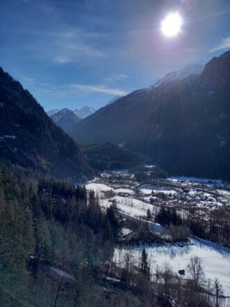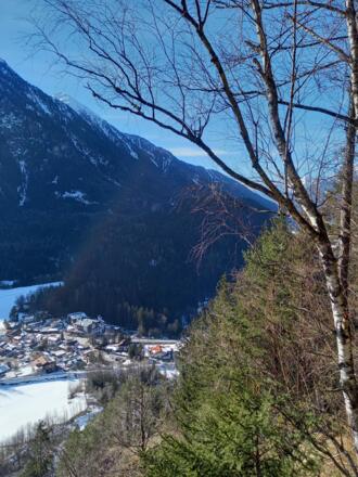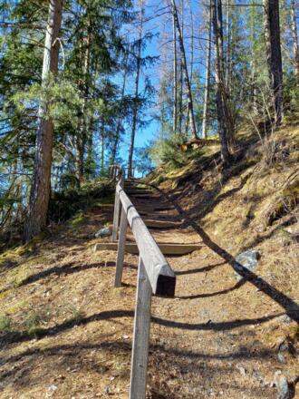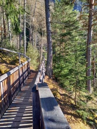Die Aussichtplattform "oberes Ebele" bietet einen tollen Blick über den Ort Habichen. Der Abstieg erfolgt teils steil auf dem Wanderweg. Vorsicht Rutschgefahr! Unterwegs passiert man die Plattform "unteres Ebele". Hier erstreckt sich der Blick talauswärts Richtung Oetz.