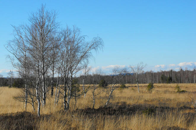 Das großflächige Hochmoor beherbergt eine seltene Flora und Fauna.