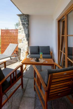 ZEIT FÜR MICH UND FAMILIEDie 2 Appartements und 5 Ferienwohnungen sind mit Liebe zum Detail,in den Farben und dem Flair der Ur-Elemente FEUER/WASSER/ERDE und LUFT eingerichtet!Entsprechend unserer Philosophie Leben im Einklang mit der Natur sind unsere Wohnungen mit Holzböden und Naturmaterialen, wie z.B. Lehmputz oder Zirbenholz-Betten ausgestattet! Der große Garten lädt zum verweilen ein, es gibt einen Barfußpfad, Kräutergarten, Feuerstelle...und 4 ESEL!