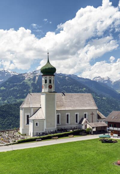 Einen Platz an der Sonne hat sich die Pfarr- und Wallfahrtskirche Sankt Bartholomäus in Bartholomäberg ausgesucht: Auf einem Bergrücken liegend, gilt der Ort als Sonnenbalkon des Montafon. In ihrer heutigen barocken Form gibt es die Kirche seit ihrer Einweihung im Jahr 1743. Sie baut auf einer langen Tradition der Seelsorge auf: Schon vor 1230 wird hier gepredigt. Vom gotischem Vorgängerbau aus dem Jahr 1418 ist ein vergoldeter Altar erhalten – der so genannte Knappenaltar. Bergknappen stifteten ihn als früheren Hauptaltar der heiligen Anna. Sie gilt als Schutzpatronin des Bergbaus – passend für Bartholomäberg, das als eines der ältesten urkundlich belegten Bergbaugebiete des Alpenraumes bekannt ist. Zusätzlich können Sie bei Ihrem Besuch in diesem Kirchenjuwel zwei weitere Altäre, eine kunstvoll geschnitzte Kanzel und ein romanisches Vortragekreuz entdecken.