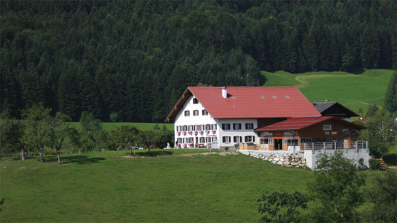 Unser Bauernhof liegt in ruhiger Lage auf einer Anhöhe zwischen Mondsee und Irrsee.