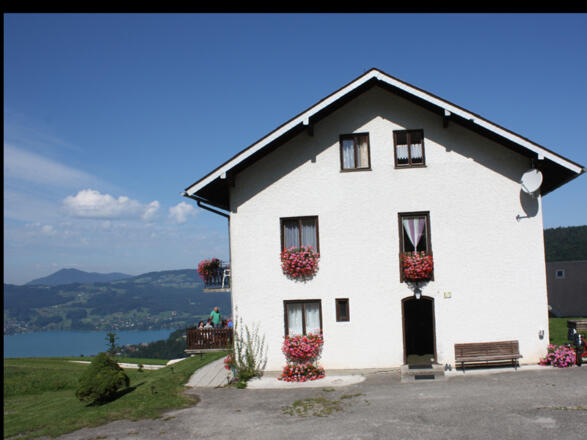 Unser Bauernhof liegt in sehr ruhiger Lage in Waldnähe mit Blick auf das Höllengebirge und den Attersee.