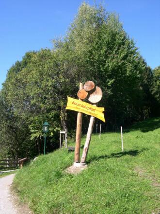 Wir starten am Hotel Alpendorf und gehen rechts in den Wald hinein. Ab dem Hotel Gut Berg befindet sich der Baumlehrpfad. Auf diesem Wegstück gibt es über 30 verschiedene Baumarten. Die einzelnen Baumarten werden mittels Beschreibungstafeln vorgestellt. Darauf wird auf das Vorkommen hingewiesen, weiters die Verwendung der Holzsorte (Nutzholz, Konstruktionsholz etc.), die Früchte der Bäume etc.