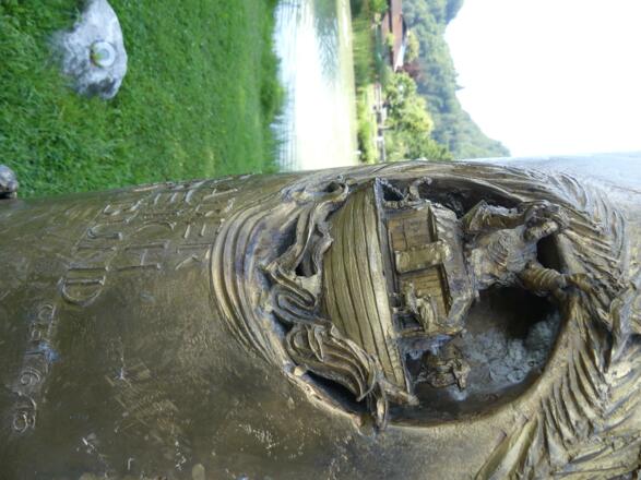 Die Oberaudorfer Benediktsäule des Eggenfeldener Künstlers Joseph Michael Neustifter ist die fünfte in einer Reihe von Säulen, die bereits in Marktl (2006), Metten (2007), Velletri (2007) und Lourdes (2009) aufgestellt wurden. Nach Plänen des Künstlers sollen zwölf Säulen in Europa von der Geschichte Gottes mit den Menschen und von der Hoffnung erzählen, welche der chistliche Glaube über die Zeiten hinweg schenkt.Wenn auch die äußere Form der Schriftrolle bei allen Säulen gleich ist, so trägt jede in der Ausarbeitung ein eigenes geistliches Programm. Bei der Oberaudorfer Säule sind es Motive aus der Frömmigkeits- und Ortsgeschichte sowie Bilder, die sich durch den Standort am Wasser ergeben.Die Form der Schriftrolle erinnert insbesondere an das in rollen überlieferte Schriftgut unserer jüdischen älternen Geschwister und nimmt uns mit hinein in die Heilsgeheimnisse Israels und den ungekündigten Bund des auserwälten Volkes.Das Kunstwerk erinnert aber auch an die mittelalterlichen Zyklen in den Amrenbibeln, wie wir sie als Bücher, Falstentücher, Fresken o. ä. kennen: Der des Lesens Unkundige sollte mit ihnen möglichst anschaulich zum Verstehen des Reichtums biblischer Bilder angeleitet werden. Der heutige Mensch ist ahingegen oft des Schauens unkundig und ertrunken in der Bilderflut, die unaufhörlich auf ihn einströmt. Hier lädt die Säule Joseph Michael Neustifters ein, sich auf den Blick mit den Augen der Seele einzulassen: Ruhig zu werden, zu verweilen und wieder sehen zu lernen, neugierig auf die große Botschaft, von der die wunderschönen filigranen Reliefs erzählen wollen.