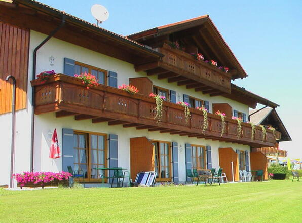 Auf einem Höhenrücken der "Ratzinger Höhe" bei Rimsting liegt in wunderbarer, sonniger Lage der Berggasthof Weingarten. Von hier hat man einen fantastischen Ausblick auf die Chiemgauer und Tiroler Bergwelt. Von hier ist es nicht weit zum Markt Prien mit der Chiemsee-Schifffahrt zu den Chiemsee-Inseln. Am Haus vorbei führt der Erlebnis-Wanderweg "Ratzinger Höhe". Im Stammhaus sind unser Restaurant, ein Nebenstüberl, ein Frühstücksraum. Gästezimmer im Stammhaus und Nebengebäude mit DU/WC/Bad, TV, Balkon oder Terrasse, Sitzgruppe in allen Zimmern, bedingt behindertengerechte Ausstattung.