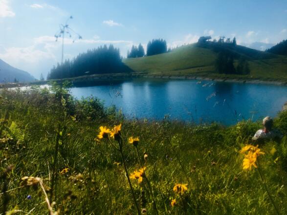 Der Start ist im Aktivhotel Alpendorf. Der erste Teil geht entlang der Straße in Richtung Kreistenalm. Nach der Kreistenalm immer der Beschilderung Wagrain - Hallmoosweg folgen. Wenn Ihr beim Gasthaus Höllenstein in Wagrain angekommen seid, dann geht der Weg wieder in Richtung Berg hinauf (Grafenberg, Storchenstadl, Hachauhütte). Nach einer Rast auf der Hachaualm geht der Weg links vom Sonntagskogel hinauf. Unbedingt einen kleinen Umweg zum Bergsee Sonntagskogel machen! Das ist einer der schönsten Plätze in der Region. Bergab geht es dann am Geisterberg / Gernkogel vorbei in Richtung Alpendorf. Viel Spaß!