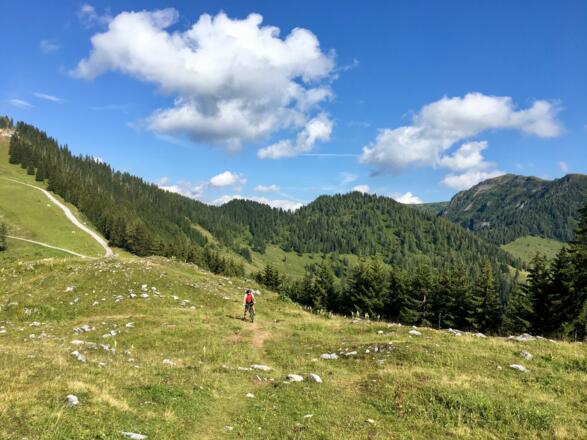 Die aussichtsreiche Mountainbiketour vom Alpendorf in Richtung Wagrain, Einkehr in der Hauchaualm und zurück über den Sonntagskogel und den Bergsee Sonntagskogel. Tolle Rundtour!