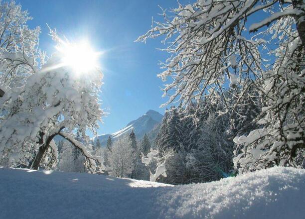 Ruhig, in schönster Lage vor dem verschneiten Bergpanorama der Osterhorngruppe.