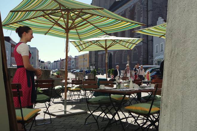 Im 1. Stock das Restaurant, mit einzigartigem Blick über die ganze Länge des Stadtplatzes, haben bis zu 50 Gäste Platz. In unserer offenen Küche, haben wir unseren speziellen Teufels-Küchen-Tisch für bis zu 6 Gäste. Sie sitzen dabei direkt gegenüber der offenen Küche in einem lauschigen Eck und sind mittendrin. Voraussichtlich von April bis einschließlich September finden zusätzliche 50 Gäste auf unserer Blumen-Kräuter-Terrasse platz.