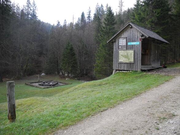 Gemütlich wandert man am Weg Nr. 472 nur leicht ansteigend in ca. 2 Stunden zuerst auf Schotterstraßen, dann auf einem Steig zum Biwakplatz Steyrsteg.
