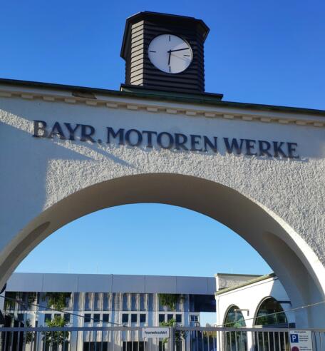 Die 1918 errichteten ersten Werkshallen von BMW zu erkennen am historischen Torgewölbe.