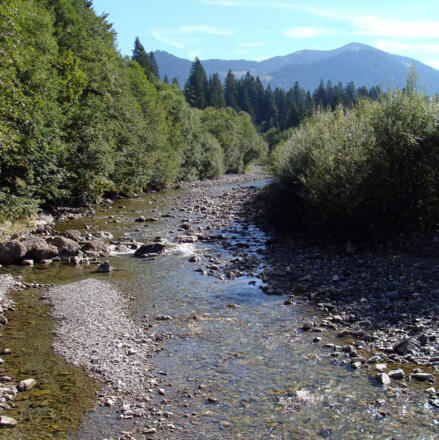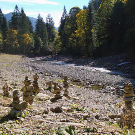 Vom Hotel aus hinab zur Ach, der Bolgenach, und dem Spazierweg "Bolgenachweg" taleinwärts folgen. Vorbei an der netten LenzenAlpe die während der Alpsaison (Juni bis mitte September) zur Einkehr einlädt. Selbstgemachte Produkte, nette Musik und Hühner, Ziegen und Hasen erfreuen Groß und Klein.