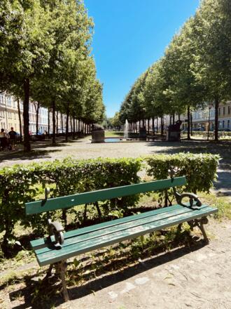 Der Bordeauxplatz, benannt nach der französischen Stadt und direkt an der Wörthstraße gelegen, ist ein Ort der Erholung im Großstadttrubel. Der Platz, inmitten von Trambahnschienen ist von leicht süßlich riechenden Linden und stilvoll renovierten Bürgerhäusern aus der Gründerzeit umgeben.